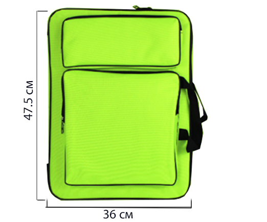 Сумка для творчества 36*47.5см SQ-16 "Салатовая" А3, текстиль, 2 наружных кармана, на молнии, 2 вида ручек (1/60)