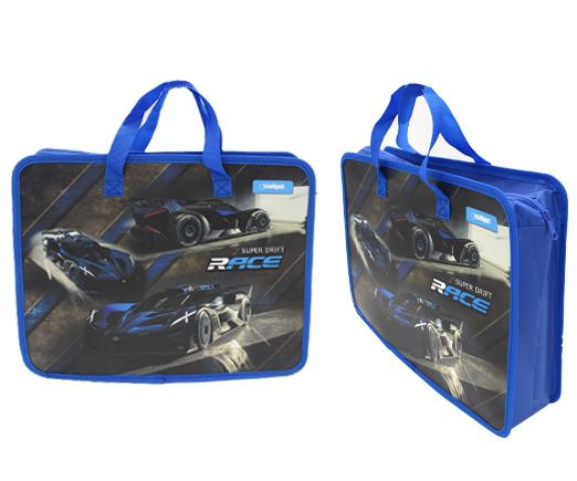 Папка для творчества А4 с ткан. ручками DB-7891 "Heed Speed" пластиковая, молния сверху, с рисунком (1/70/140)