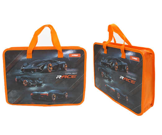 Папка для творчества А4 с ткан. ручками CT-76303 "Race" пластиковая, молния сверху, оранжевая с рисунком (1/120/240)