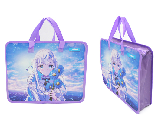 Папка для творчества А4 с ткан. ручками SZ-73200 "Аниме" пластиковая, молния сверху, сиреневая с рисунком (1/120/240)