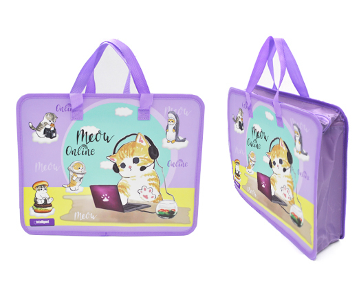 Папка для творчества А4 с ткан. ручками SZ-73202 "Котики онлайн" пластиковая, молния сверху, сиреневая с рисунком (1/120)