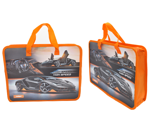 Папка для творчества А4 с ткан. ручками SZ-73203 "High speed" пластиковая, молния сверху, оранжевая с рисунком (1/120/240)