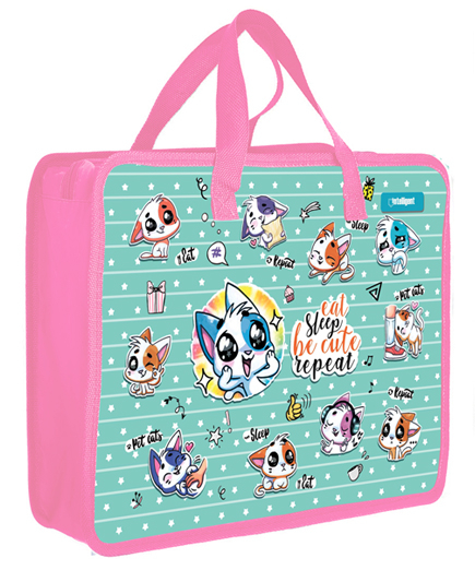 Папка для творчества А4 с ткан. ручками DB-7893 "Веселые котики" пластиковая, молния сверху, с рисунком (1/70/140)