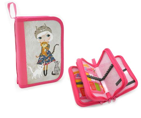 Пенал 3 отд. BV-244 "Девочка в шапке, котики" ламин картон,внутр оформ,б/нап,розов (1/12/96)