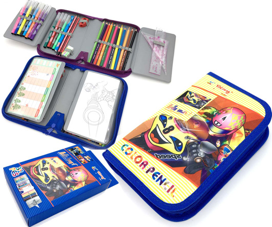 Пенал 1 отд. НАПОЛНЕННЫЙ BY-297М Yalong Для мальчиков с 2-мя створками, текстиль 32 предмета YL98038 (1/2/64)