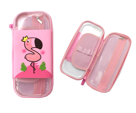 Пенал 1 отд. CF-32 "Фламинго" 22*9*4см EVA пластик, розовый, прозрачный с силиконовой вставкой-фламинго, на блистере №QT-5830 (2/12/180)