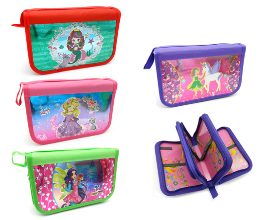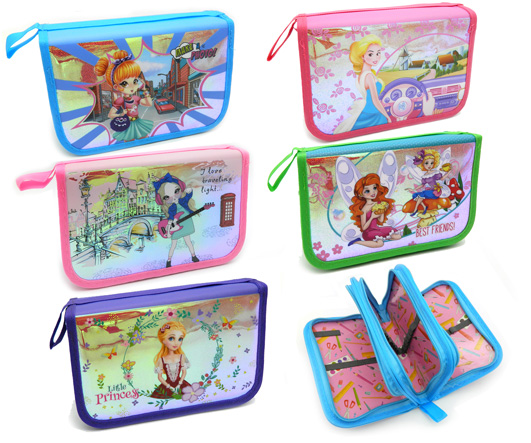 Пенал 3 отд. CH-35 "Для девочек" рисунок с блестками, внутреннее оформление, без наполнения, цвета ассорти, в ПВХ-пакете (1/12/96)