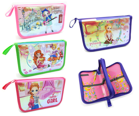 Пенал 3 отд. CH-31 "Для девочек" фольгированный рельефный рисунок, внутреннее оформление, без наполнения, цвета ассорти, в ПВХ-пакете (1/12/96)
