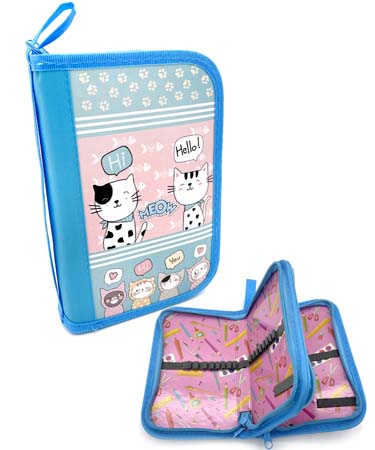 Пенал 2 отд. CH-45 "Котики" голубой, внутреннее оформление, без наполнения, в ПВХ-пакете (1/12/120)