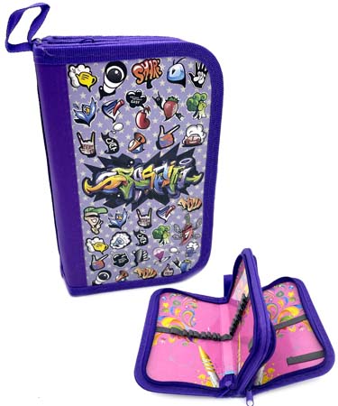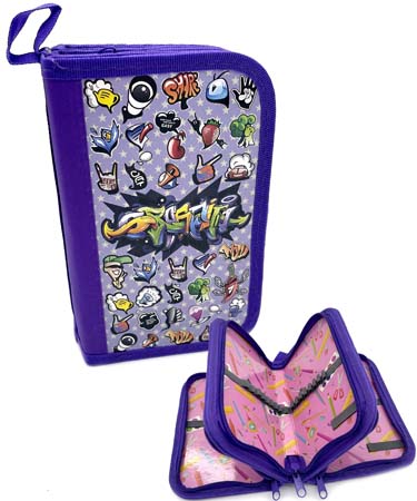 Пенал 3 отд. CH-64 "Граффити" фиолетовый, внутреннее оформление, без наполнения, в ПВХ-пакете (1/12/96)