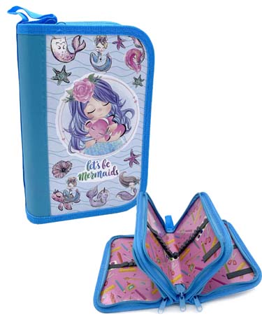 Пенал 3 отд. CH-58 "Маленькая русалка" голубой, внутреннее оформление, без наполнения, в ПВХ-пакете (1/12/96)