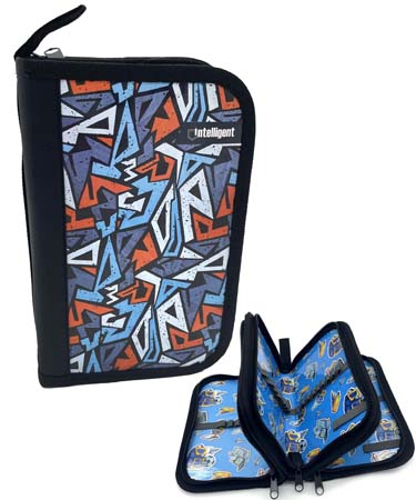 Пенал 3 отд. CH-59 "Треугольники" черный, внутреннее оформление, без наполнения, в ПВХ-пакете (1/12/96)