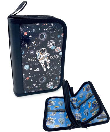 Пенал 3 отд. CH-65 "Космонавт" черный, внутреннее оформление, без наполнения, в ПВХ-пакете (1/12/96)