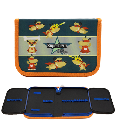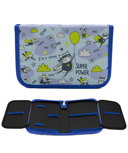 Пенал 1 отд. CI-9003 "Супер пёс" с 2-мя створками, текстиль, 21*14*4см, двухцветный с рисунком (1/1/100)