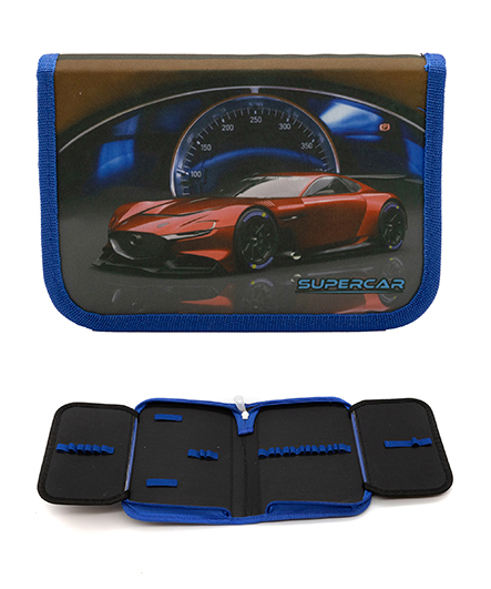 Пенал 1 отд. CJ-12002 "Красный суперкар" с 2-мя створками, текстиль 21*14*4см, черный (1/100)