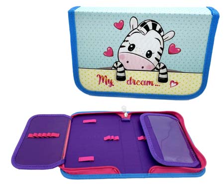 Пенал 1 отд. CE-256 "Зебра" с 2-мя створками, текстиль 21*14*4см (1/1/100)