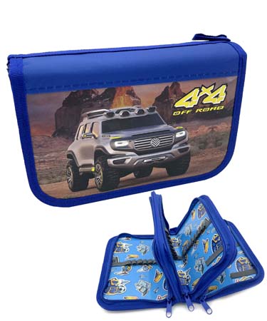 Пенал 3 отд. CH-55 "Внедорожник" синий, внутреннее оформление, без наполнения, в ПВХ-пакете (1/12/96)