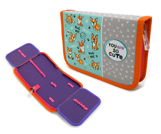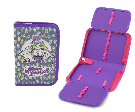 Пенал 1 отд. CP-68330 "Зая в шапочке" с 2-мя створками, текстиль 21*14*4см, сиреневый (1/100)