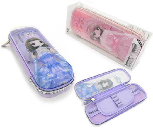 Пенал 1 отд. CP-184 "Красавица" 22*8*4см EVA прозрачный пластик с объемным рисунком, с 1 створкой, цвета ассорти, в уп ПВХ (1/30/180)