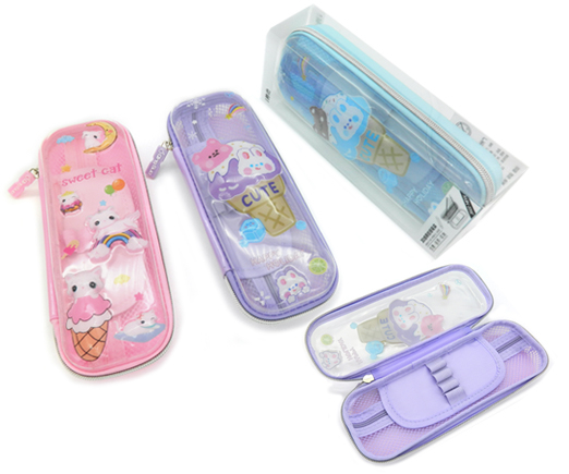 Пенал 1 отд. CP-187 "Мороженка" 22*8*4см EVA прозрачный пластик с объемным рисунком, с 1 створкой, цвета ассорти, в уп ПВХ (1/30/180)