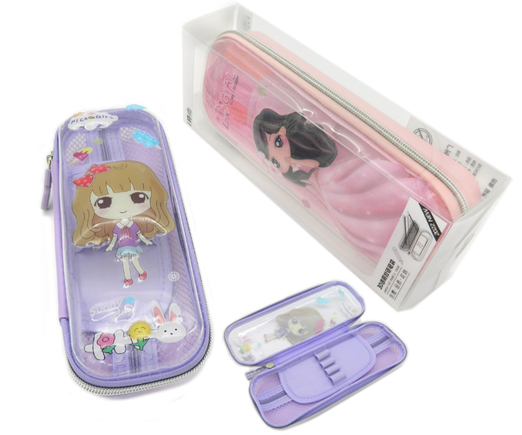 Пенал 1 отд. CR-39/CP-188 "Девочка" 22*8*4см EVA прозрачный пластик с объемным рисунком, с 1 створкой, цвета ассорти, в уп ПВХ (1/30/180)