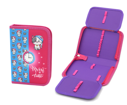 Пенал 1 отд. CP-68326 "Meow time" с 2-мя створками, текстиль 21*14*4см, сине-розовый (1/100)