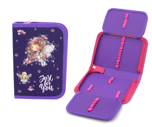 Пенал 1 отд. CP-68327 "Ангелочек" с 2-мя створками, текстиль 21*14*4см, фиолетовый (1/100)