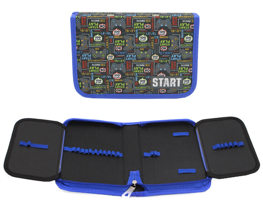 Пенал 1 отд. CP-68329 "Game" с 2-мя створками, текстиль 21*14*4см, черный (1/100)