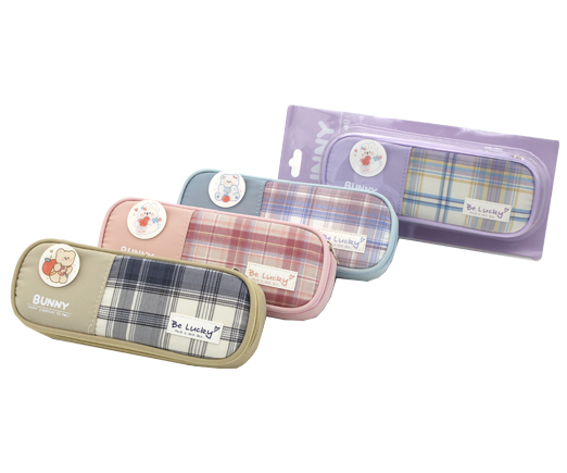 Пенал 1 отд. CR-44 "Зайка" овальный, текстиль в клетку, со значком, без наполнения, цвета ассорти, в упаковке ПВХ №7150 (1/30/180)
