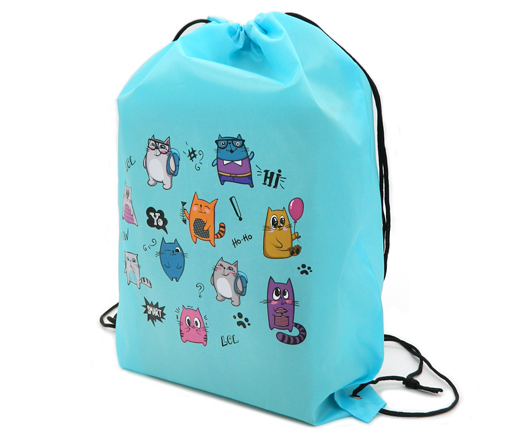 Мешок для обуви CQ-22566 "Забавные котики" голубой полиэстер 35*45см, чёрные завязки (2/10/990)