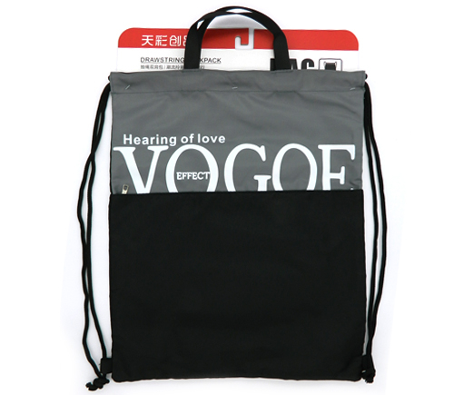 Мешок для обуви CY-57/Черно-серый "Vogue" полиэстер, 35*42см, с ручкой, карман на молнии, чёрные завязки (1/200)