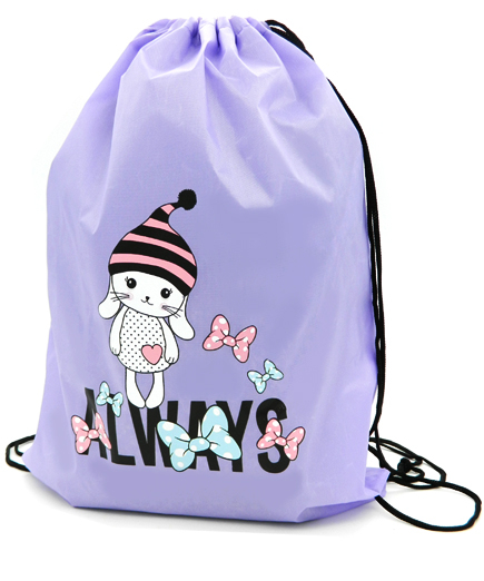 Мешок для обуви CY-3058 "Зайка" сиреневый полиэстер 35*45см, чёрные завязки (2/10/1000)
