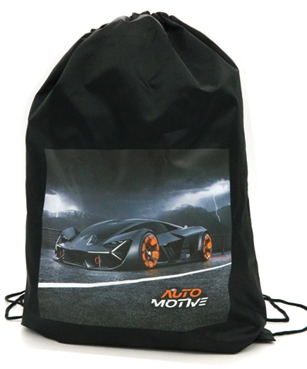 Мешок для обуви CY-3060 "Спорткар" черный полиэстер 35*45см, чёрные завязки (2/10/1000)