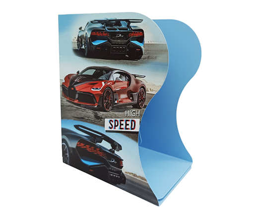 Подставка для книг - держатель на полку DA-65631 "Скорость" металлическая, 19х15см, голубая с рисунком, в к/коробке (1/24)