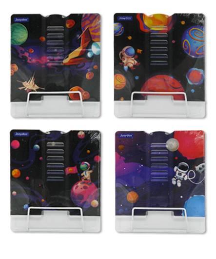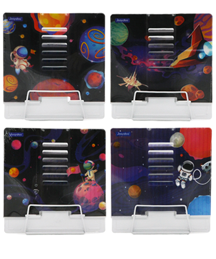 Подставка для книг QD-51003-3 А6 "Космос" белая с рисунком, металл, 15х18см, ассорти, в термопленке (1/30/60)