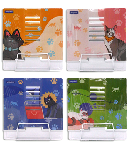 Подставка для книг QD-51004-2 А5 "Кошки" белая с рисунком, металл, 21х22см, ассорти, в термопленке (1/12/48)