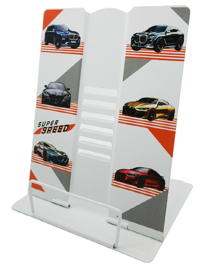Подставка для книг DE-35011 INTELLIGENT "Супер скорость" металлическая, 26х21см, белая с рисунком, в пакете (1/12/48)