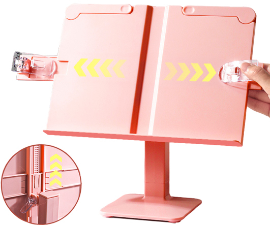 Подставка для книг DG-170 "Розовая" пластиковая, 28,6х22х8,5см, с регулировкой высоты, клипы для фиксации страниц, в к/к №877 (1/36)
