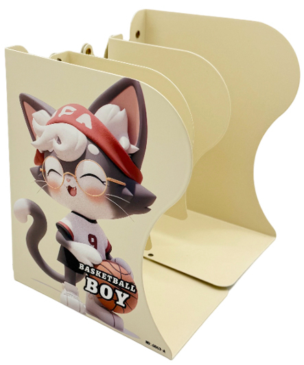Подставка для книг - держатель на полку DE-216 INTELLIGENT "Basketball boy" металл, 19х15см, бежевая с рисунком, в к/к №6863-B (1/24)