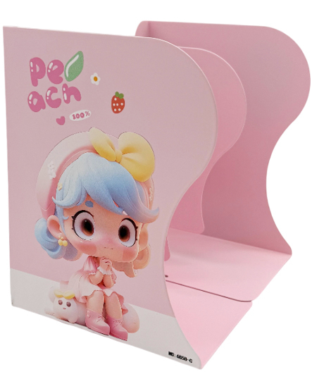 Подставка для книг DE-224 INTELLIGENT "Peach" металл, 19х20см, розовая с рисунком, в пакете №1190-C (1/12/48)