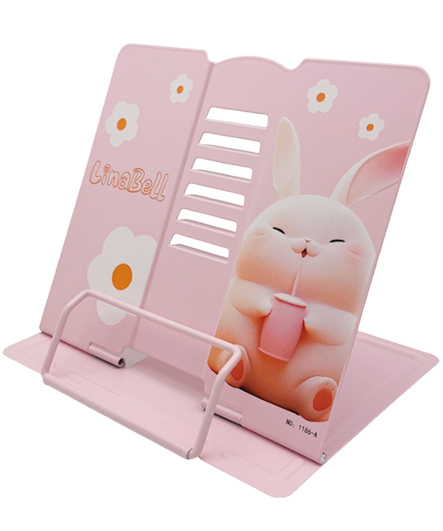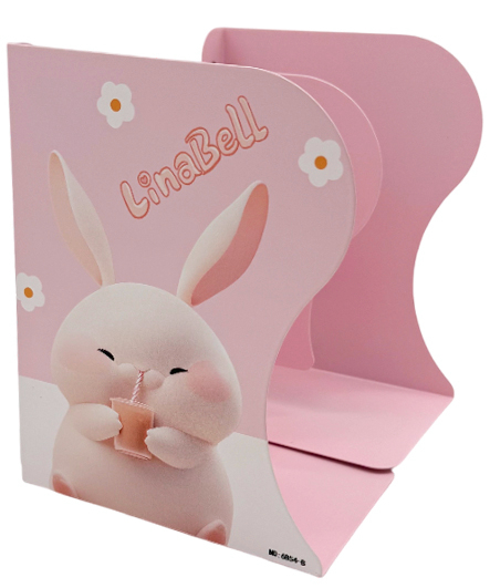 Подставка для книг DE-223 INTELLIGENT "Кролик" металл, 19х20см, розовая с рисунком, в пакете №1186-C (1/12/48)