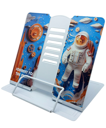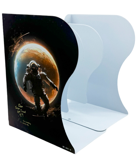 Подставка для книг QD-51003-3 А6 "Космос" белая с рисунком, металл, 15х18см, ассорти, в термопленке (1/30/60)