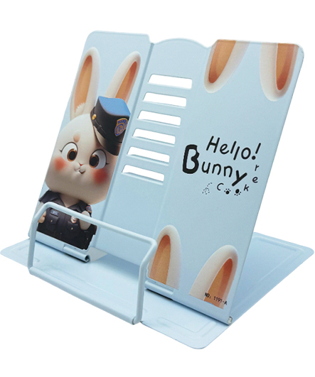 Подставка для книг DE-225 INTELLIGENT "Кролик-полицейский" металл, 19х20см, голубая с рисунком, в пакете №1191-C (1/12/48)