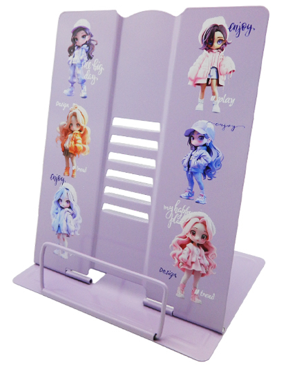 Подставка для книг DE-35013 INTELLIGENT "Девочки" металлическая, 26х21см, сиреневая с рисунком, в пакете (1/12/48)