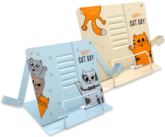 Подставка для книг DI-282 "Cat day" металлическая 19х21см, рисунок, с держателем, ассорти, в к/кор (1/52)