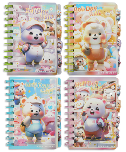 Записная книжка А6 80л DE-167 "Мишка" 10,5*14,8см, спираль, твердая обложка, линия, с разделителями, ассорти А6-205-1 (1/20/280)