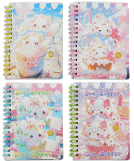 Записная книжка А6 85л. DE-170 "Cat coffee" 10,5*14,8см, спираль, твердая обложка, линия, ассорти А6-222-4 (1/20/280)
