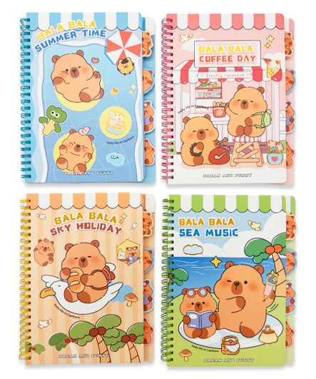 Записная книжка А5 80л. DI-457 "Капибара" 16,2*21,2см, картонная обложка, на спирали, в линию, с разделителями, ассорти, в ПВХ пакете A5-205-43 (1/12/120)