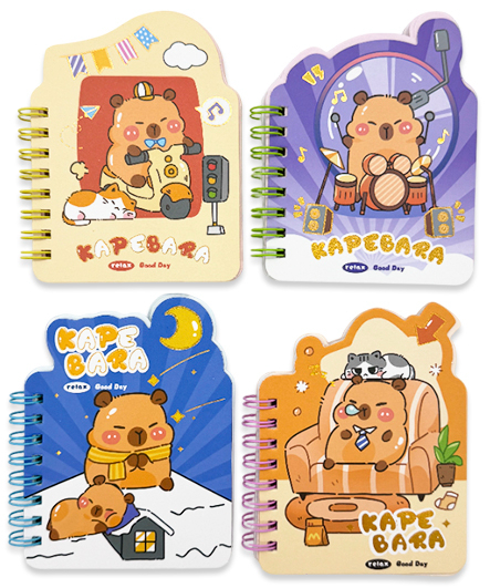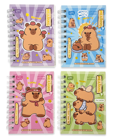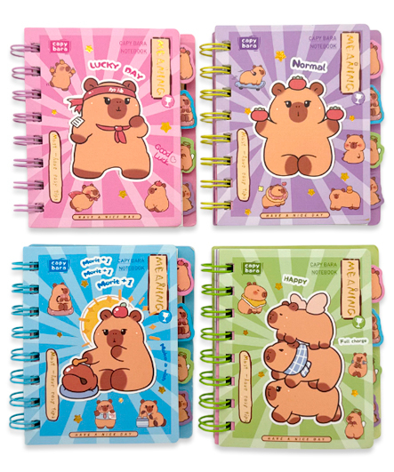 Записная книжка А7 60л. DI-436 "Kapebara" 9х11,7см, на спирали, в линию, ассорти, в ПВХ пакете №110-5 (4/24/480)