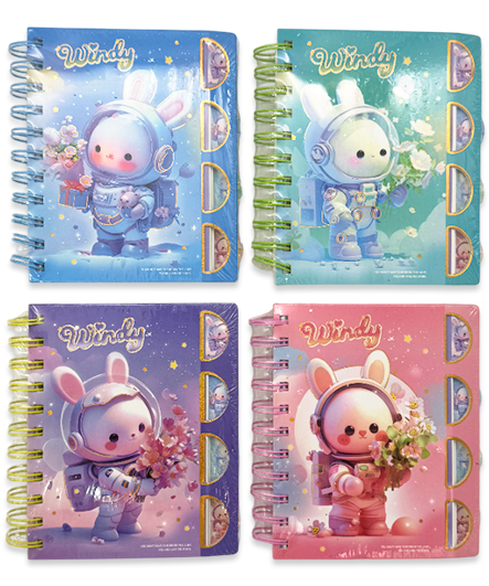 Записная книжка А5 100л. DI-615 спираль "Зайки" 15,4х19,6см, твердая обложка, с разделителями и голографией, ассорти (1/12/120)